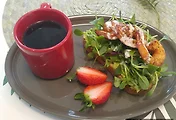 빵과 딸기, 크림을 같이 먹으면 맛의 조합이 괜찮아요.