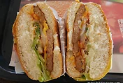반으로 잘라보니 정말 재료가 빵 속에 미어터질 듯이 들어있었어요.