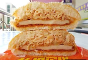 햄버거 번이라기보다는 술떡이나 호빵에 가까운 식감으로, 약간 끈적거리기도 하고 입에 달라붙는 거 같아요.