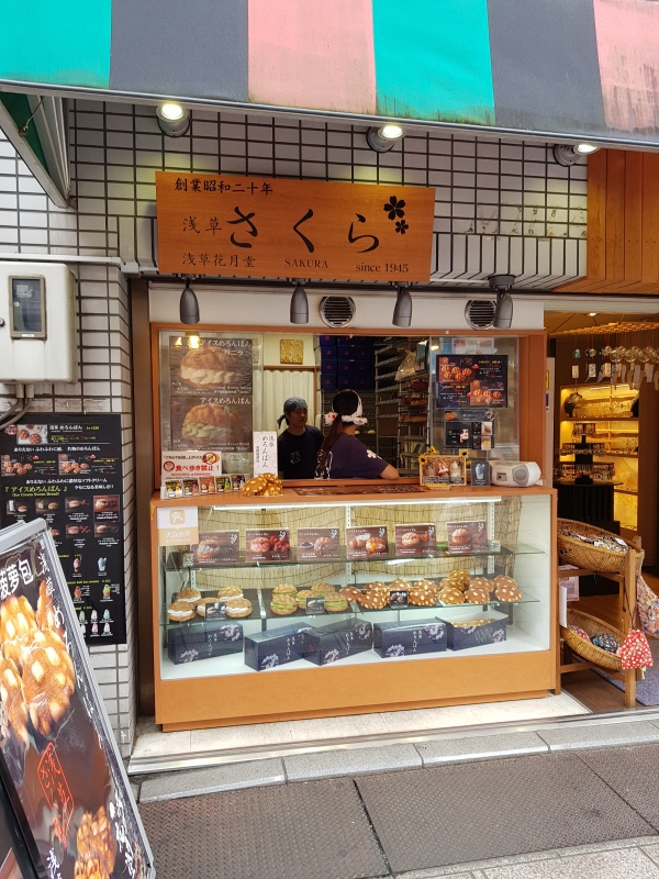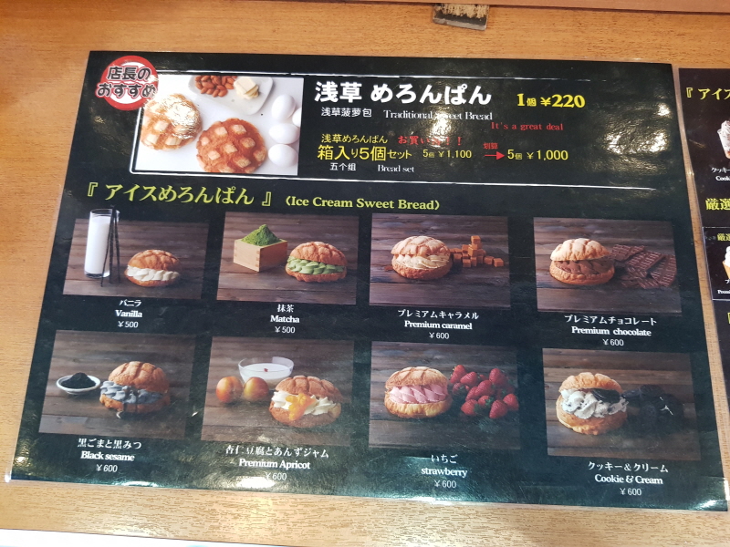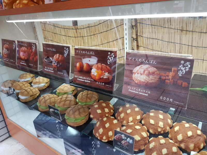 아사쿠사를 돌아다니는데 메론빵 속에 아이스크림을 넣어서 파는 가게를 봤어요.