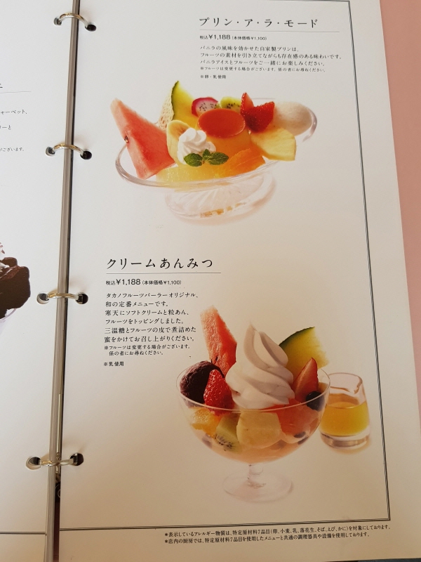 타카노 후르츠팔러 메뉴.
