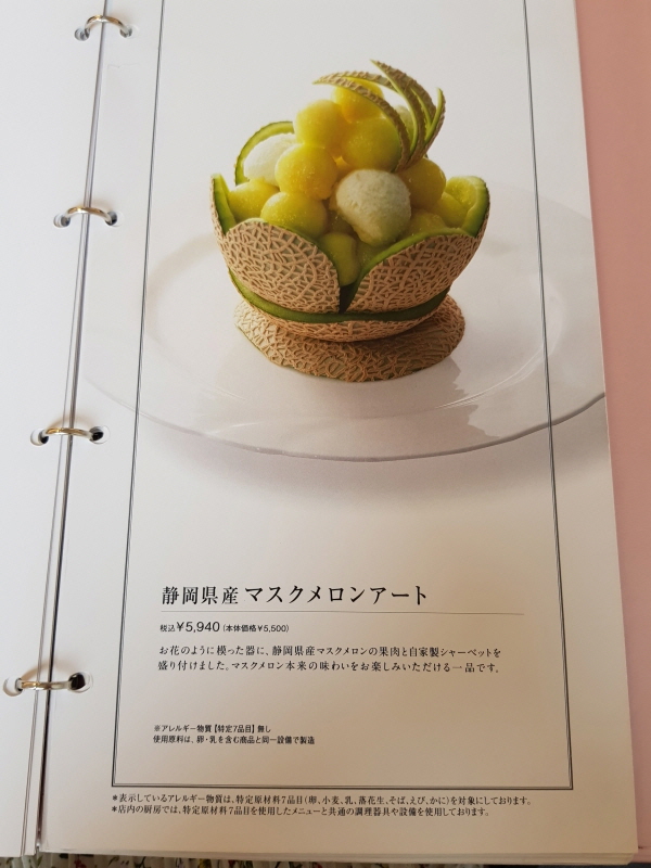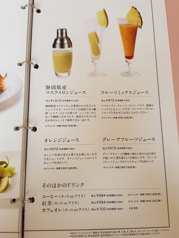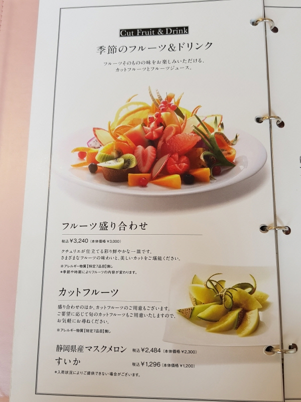 후르츠 모듬 フルーツ盛り合わせ Assorted Fruits 가격은 3,000엔, 소비세 포함 3,300엔 (약 3만 4천원) 이다.