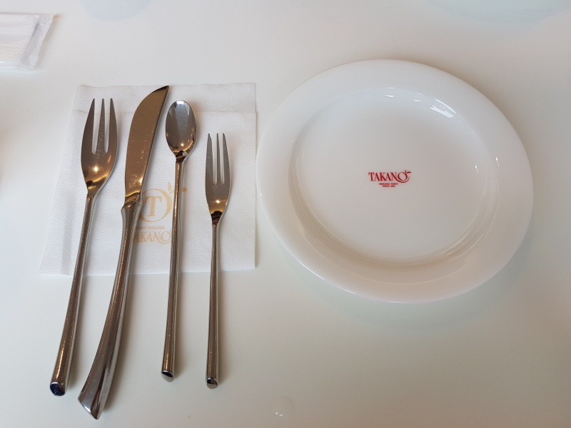 주문을 하니, 포크와 나이프 작은 스푼과 앞접시를 세팅해줬습니다.