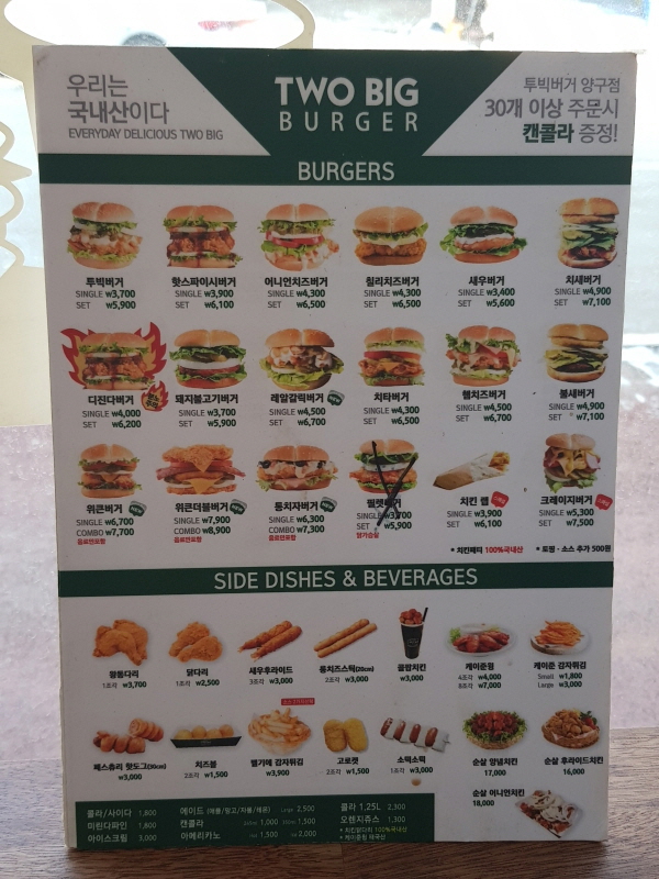 투빅버거 메뉴.