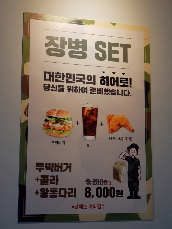 춘천 버스터미널 옆 건물에도 KFC가 있는데, 한때 이등병팩, 병장팩, 중대장팩 등등 해서 군인에게만 판매하는 메뉴가 있었어요.