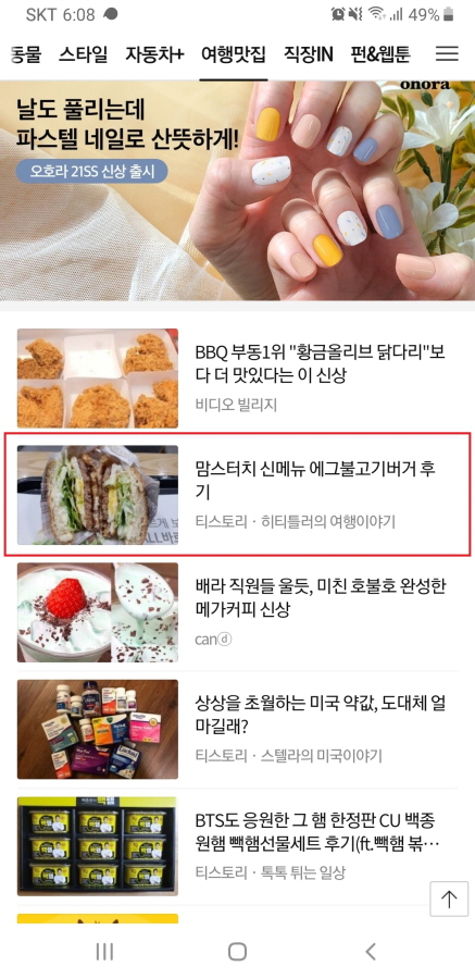 이번에 다음 메인에 올라온 글은 2월 3일에 출시한 맘스터치 신메뉴 에그 불고기버거 글이에요.