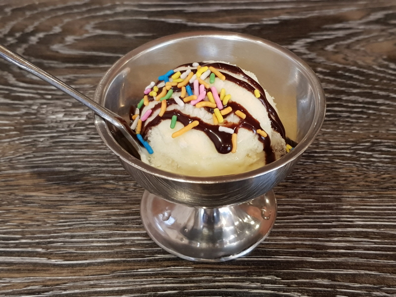 후식으로는 커피, 홍차, 주스, 녹차, 아이스크림이 있는데, 저는 아이스크림으로 골랐어요.