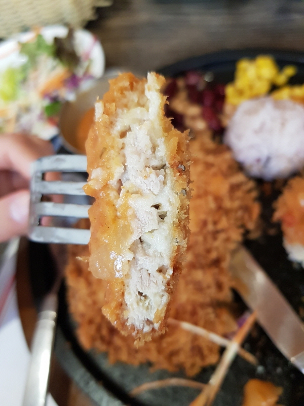제 손보다도 훨씬 큰 돈까스가 2덩어리나 나왔는데, '이걸 다 먹을 수 있을까?' 싶더라구요.