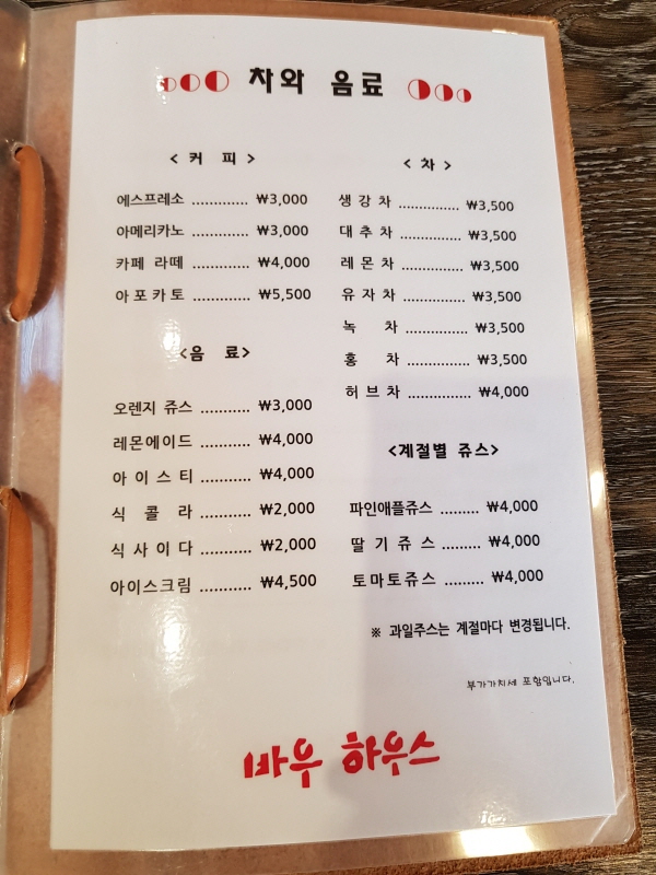 바우하우스 메뉴.
