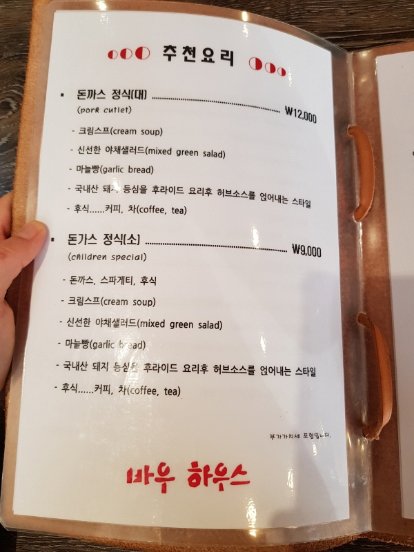 돈까스 정식은 소와 대, 2가지가 있었는데, 소는 children special 이라고 해서 대를 주문했는데 가격은 12,000원입니다.