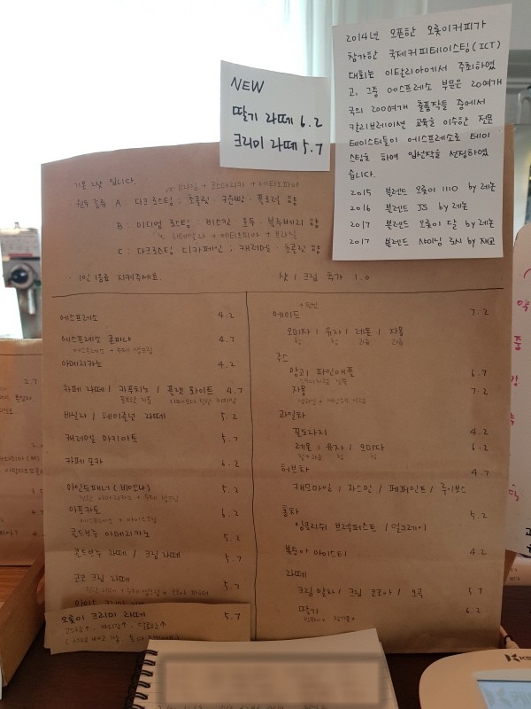 간단한 커핑노트는 붙어있지만, 잘 모를 경우 물어보면 추천도 해주시는 거 같아요.