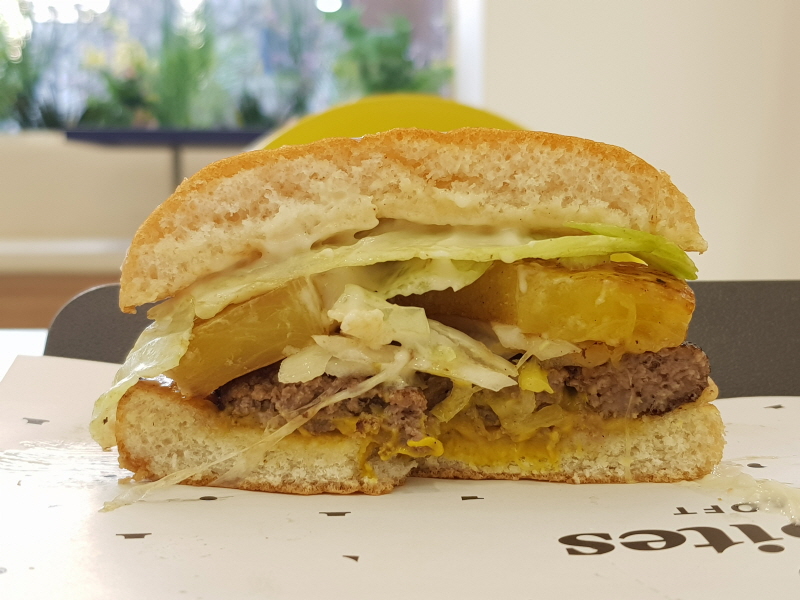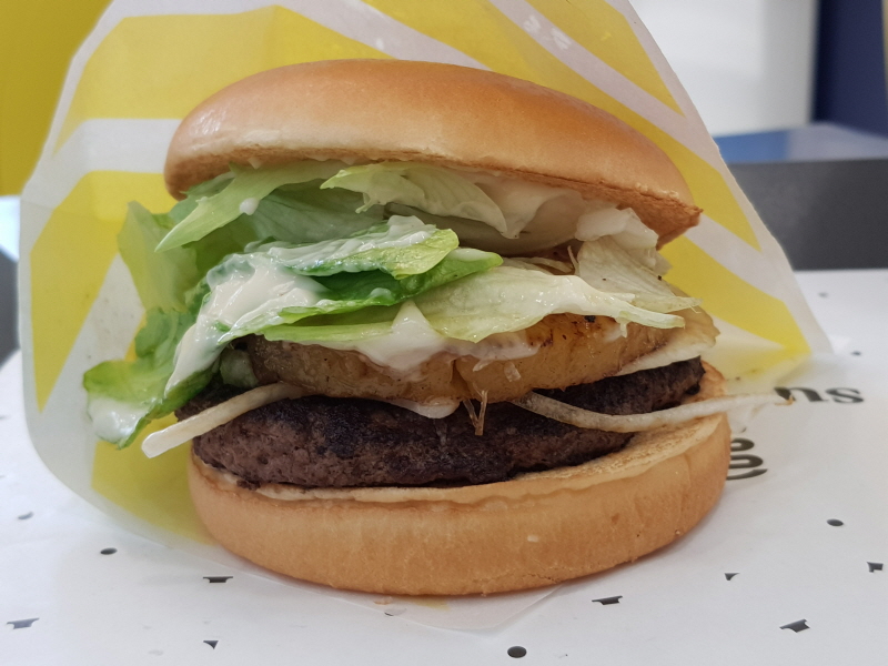 익은 파인애플에서는 과즙이 나오면서 달짝지근하고, 패티는 짭조름하니 정말 단짠단짠의 조합이더라구요.