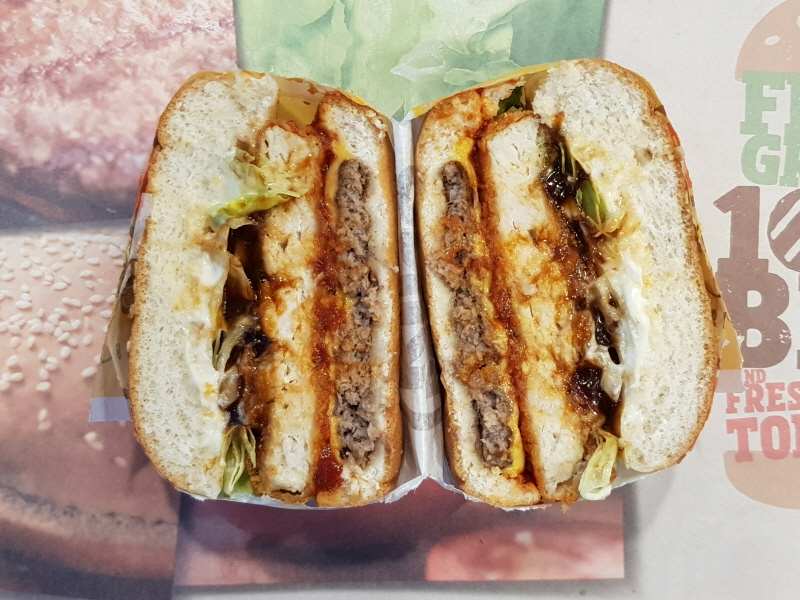 패티도 고기 패티와 치킨패티, 두 겹이라서 큰 사이즈의 버거가 아님에도 든든한 느낌이 있어요.