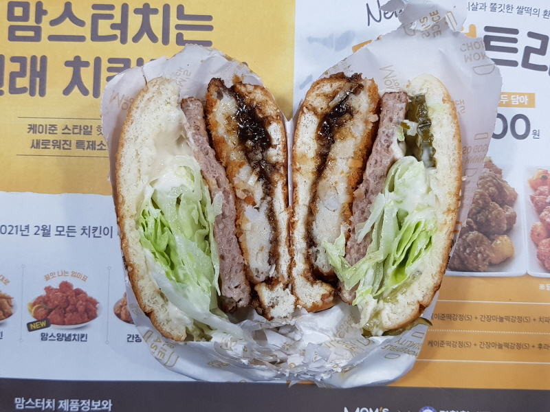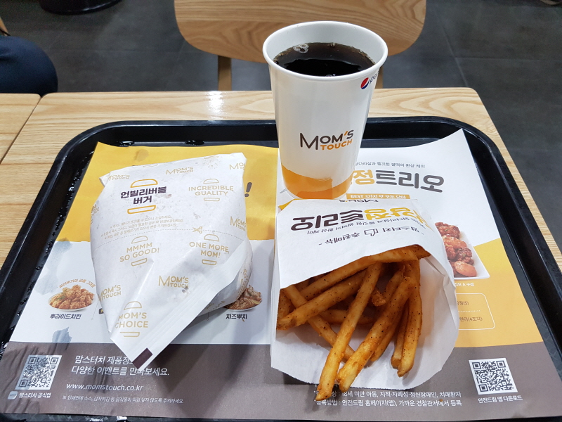 한국인에게는 친숙한 버거이지만 맘스터치에서는 사실 구색맞추기용 쩌리 메뉴에 불과한데, 2가지를 조합했다는 게 참 아이디어라고 느껴졌어요.