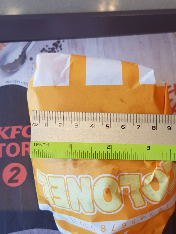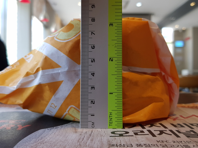 KFC 햄버거라기보다는 맘스터치의 느낌이 더 많이 드는 크기예요.