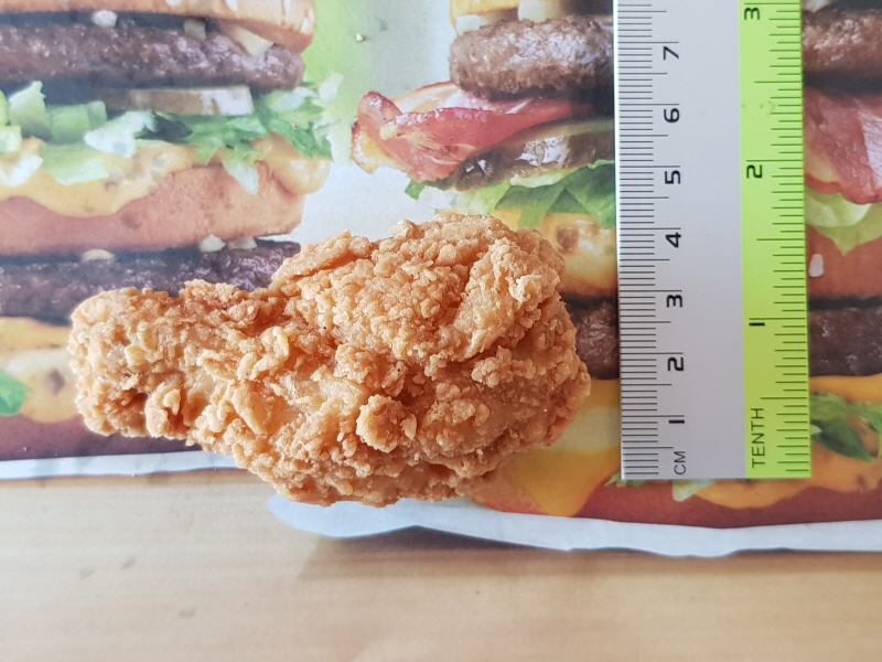 닭봉 크기는 가로 7.5cm, 세로 4cm 입니다.