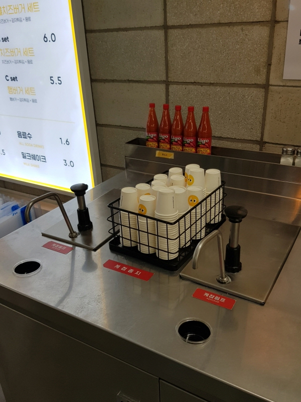 옆에는 종이컵에 놓여있는데, 세트 주문시에는 컵을 직접 하나씩 챙겨가라고 해요.