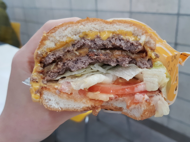 미국식 치즈버거는 케첩과 피클로 정말 자극적인 신맛을 내서 저는 그닥 좋아하지 않은데, 크라이치즈버거의 더블치즈버거는 적당히 묵직하면서도 자극적이지 않아서 맛있더라구요.