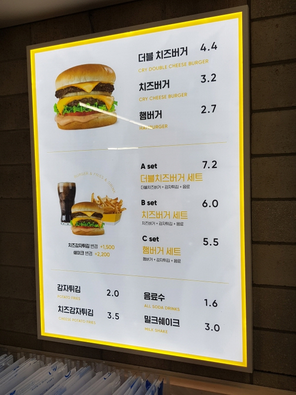 크라이 치즈버거가 이 단가를 유지할 수 있는 비결이 뭘까, 개인적으로 생각해보니까 메뉴를 최소화한 게 한 가지 요인이지 않을까 싶어요.