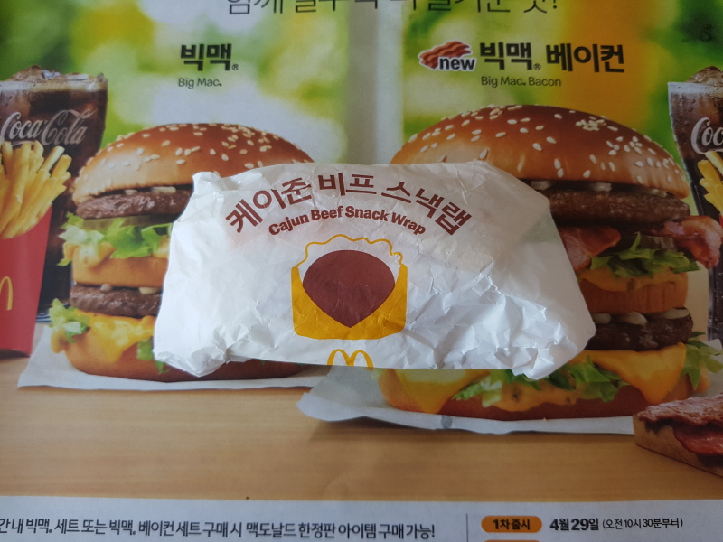 올해 맥도날드에서 맥런치도 다시 시작하고, 이것저것 리뉴얼하면서 비프스낵랩도 재출시되었어요.