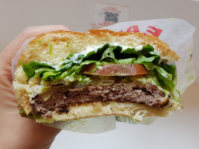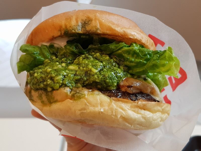전 바질페스토조차 제대로 먹어본 적이 없어서 원래 그런지는 잘 모르겠지만, 상대적으로 퍽퍽한 패티의 육즙은 시금치 페스토의 기름기로 대체하는 거 아닌가 하는 생각도 들었어요.