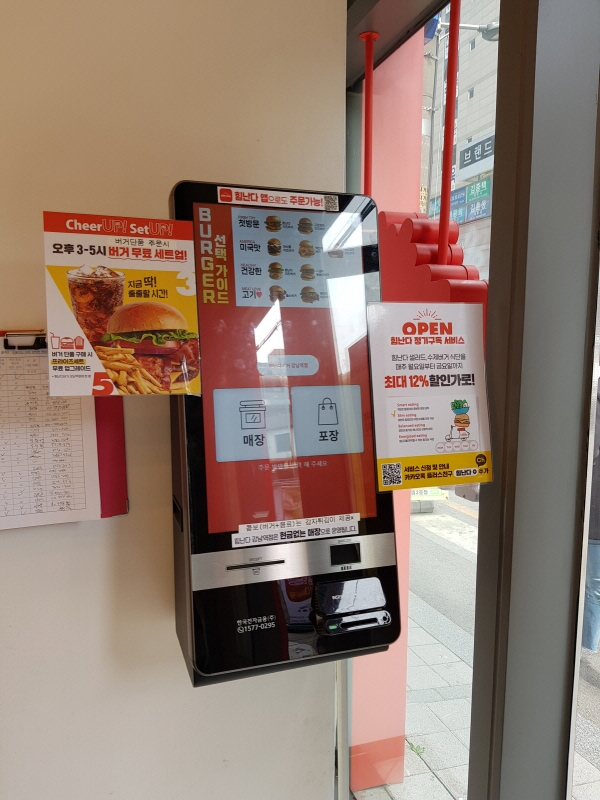 주문은 매장 입구에 있는 키오스크에서 할 수 있습니다.