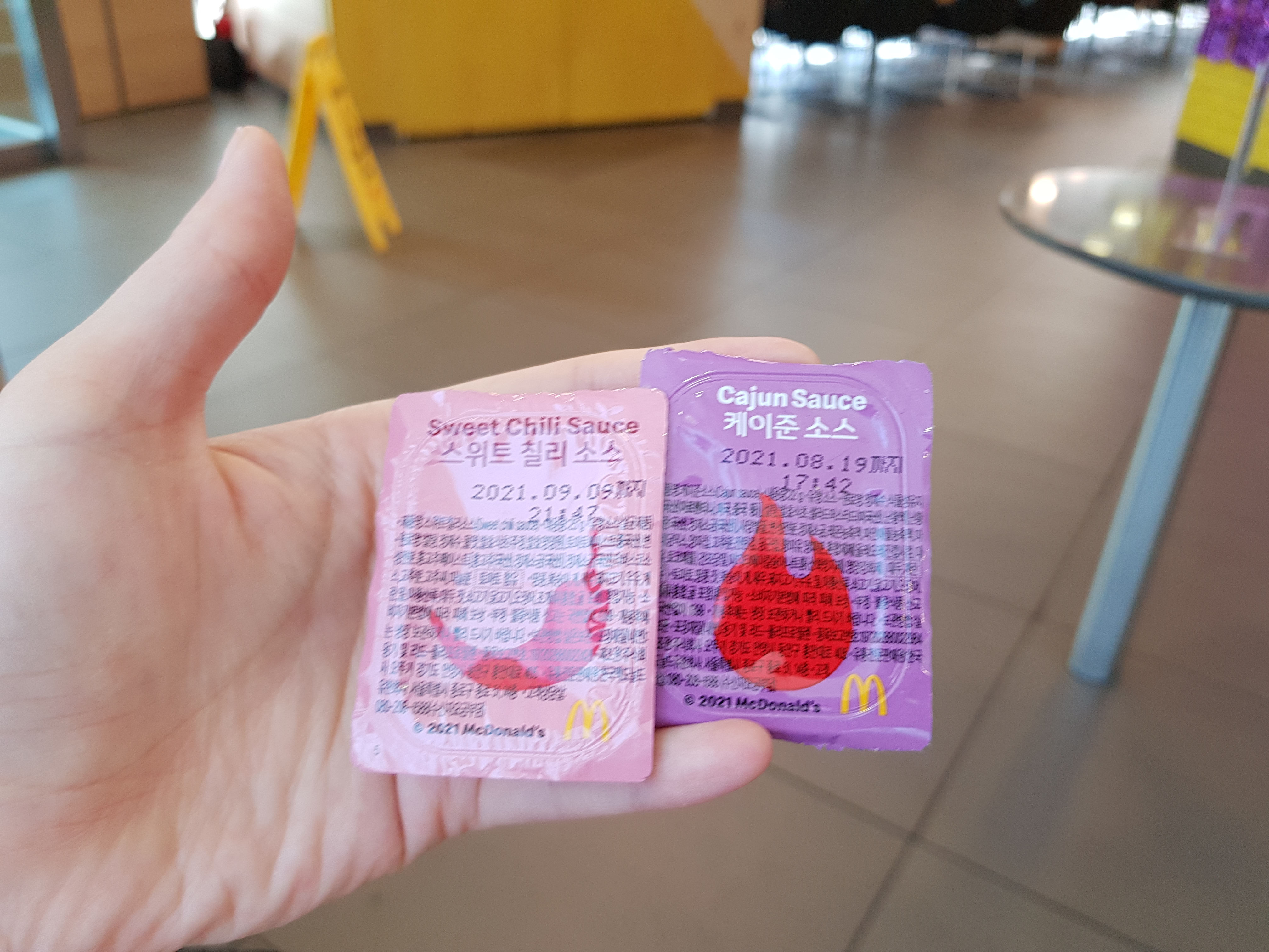 원래 맥너겟 주문시 선택할 수 있는 소스가 스위트칠리 소스, 스위트 앤 사워소스, 케이준 소스, 이렇게 3가지인데, 그 중 BTS 멤버들이 저 소스를 좋아한다고 해서 이번 구성에 포함되었어요.