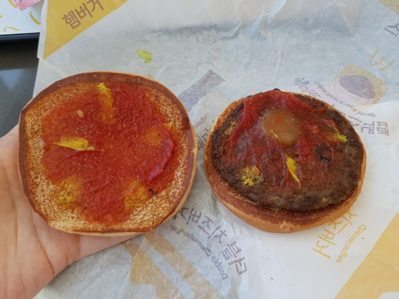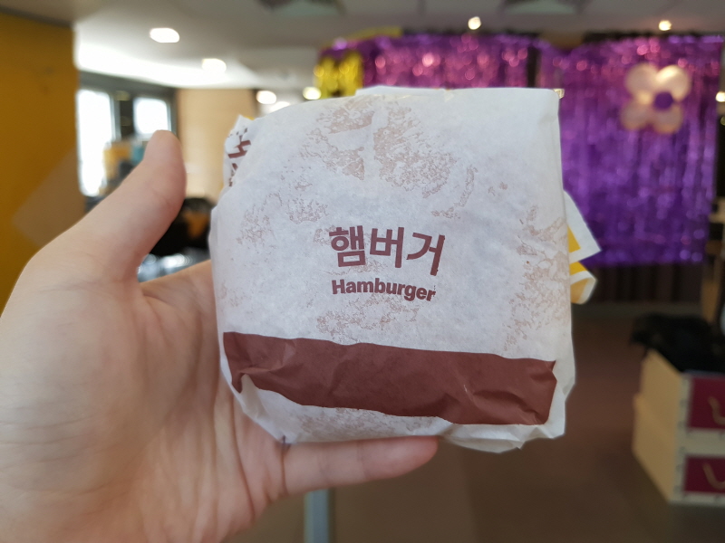 번에 패티 1장, 피클, 다진 양파, 케첩, 머스터드만 들어간, 가장 기본적이고 심플한 버거예요.