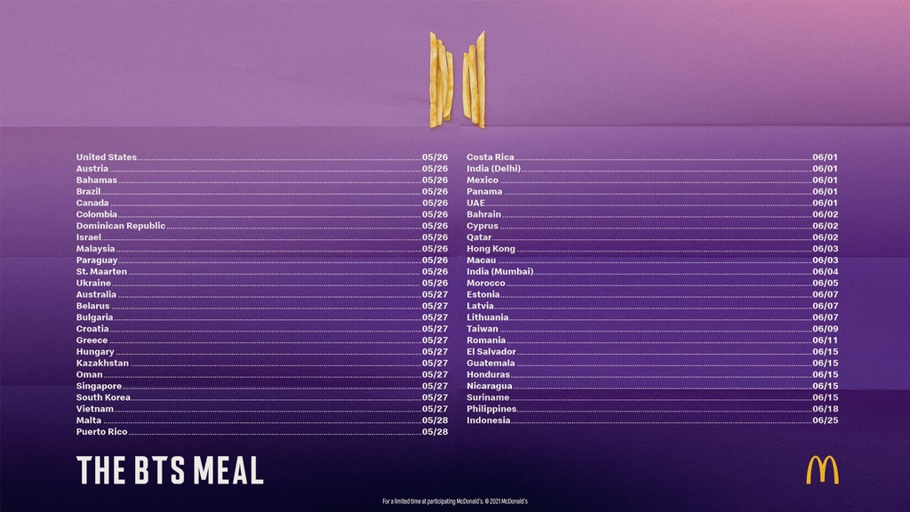 '한국 SOUTH KOREA' 이라는 아시아의 작은 나라에서 온 BTS 라는 그룹의 이름을 딴 메뉴를 출시한 것도 놀라운 일이지만, 무려 전세계 49개 국가에서 판매를 해요.