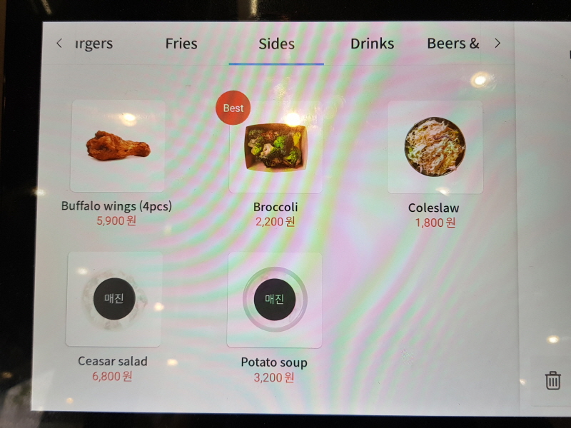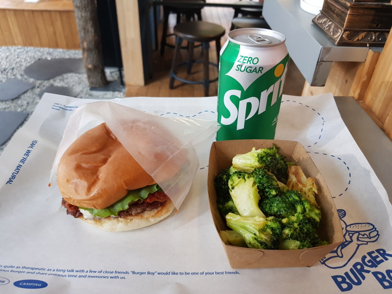 저는 버건디버거와 제로 스프라이트, 구운 브로콜리를 주문하였습니다.
