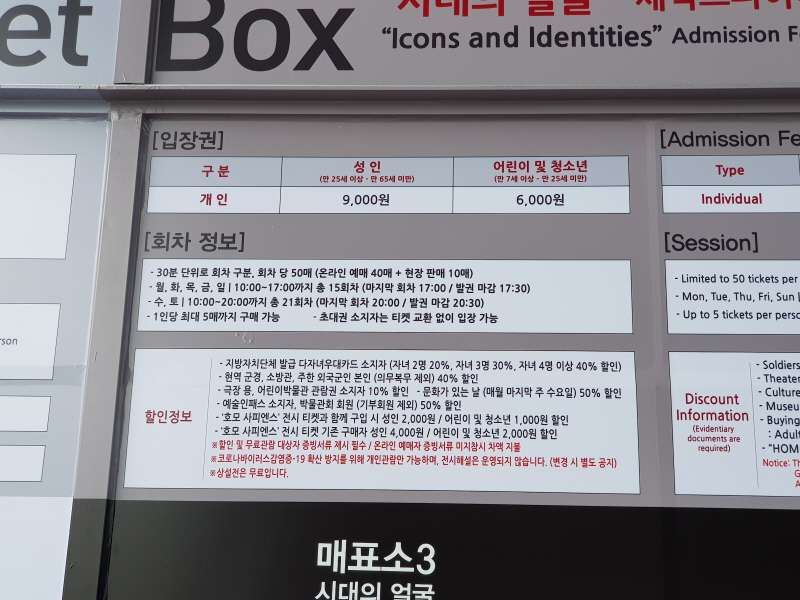 50명도 온라인 예매 40명+현장 예매 10명으로, 주말이나 공휴일에는 인원 제한에 걸려서 입장을 못하거나 기다려야하는 수도 있으니 미리 인터파크에서 예매를 하고 가는 것이 좋습니다.