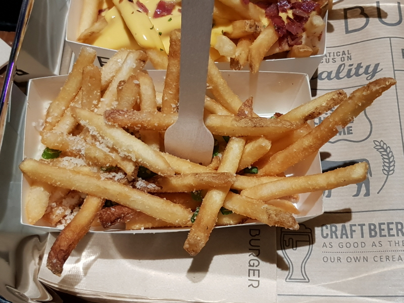 트러플 파마산 프라이는 프렌치 프라이에 트러플 오일과 소금, 쪽파를 뿌려서 섞은 감자튀김이에요.
