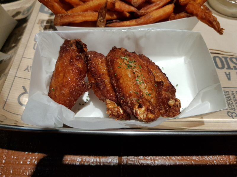 제가 아는 버팔로윙은 좀 더 매콤하고 향신료향이 많이 났는데, 여기 버팔로윙은 후추맛이 강한 전기구이 통닭 맛에 비슷했어요.