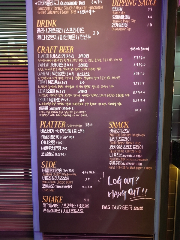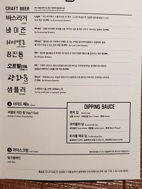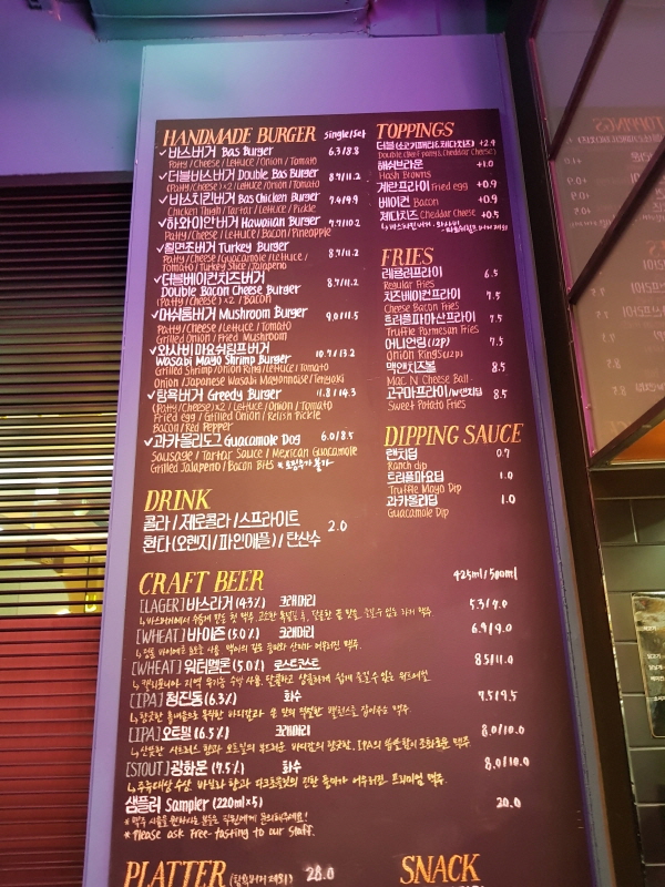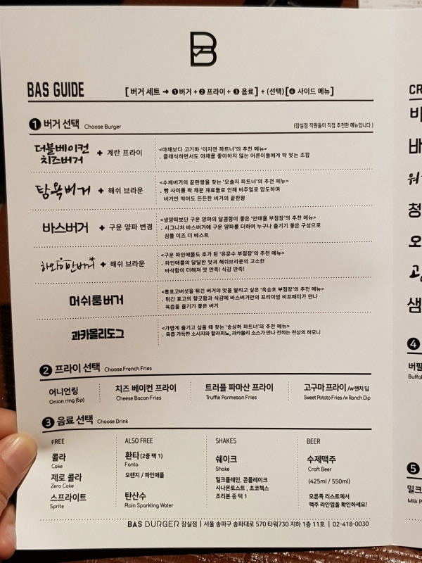 바스버거 잠실점 원래 메뉴.