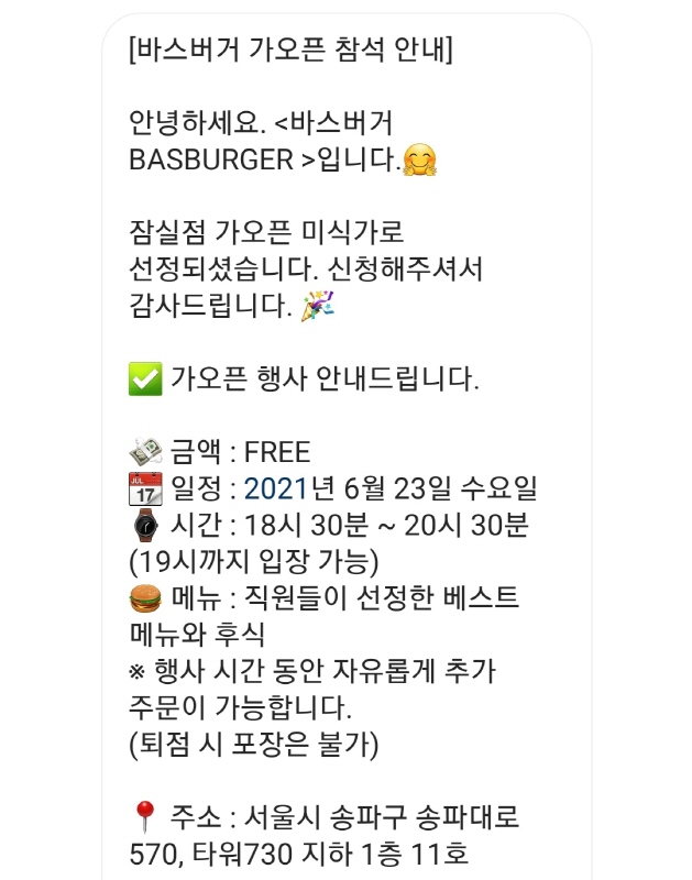 바스버거 잠실점은 타워 730 지하 1층에 위치해있어요.
