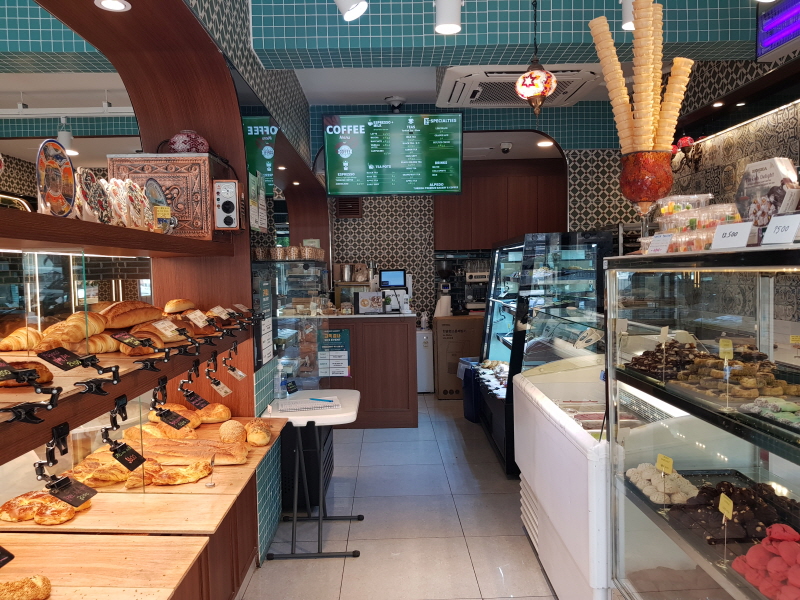 들어가면 양쪽으로 터키식 빵과 디저트가 쭉 진열되어 있어요.