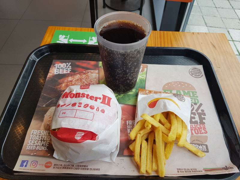 맛은 있지만, 제가 버거킹의 '몬스터' 라는 단어에 너무 큰 기대를 했던 게 아닐까 싶었어요.