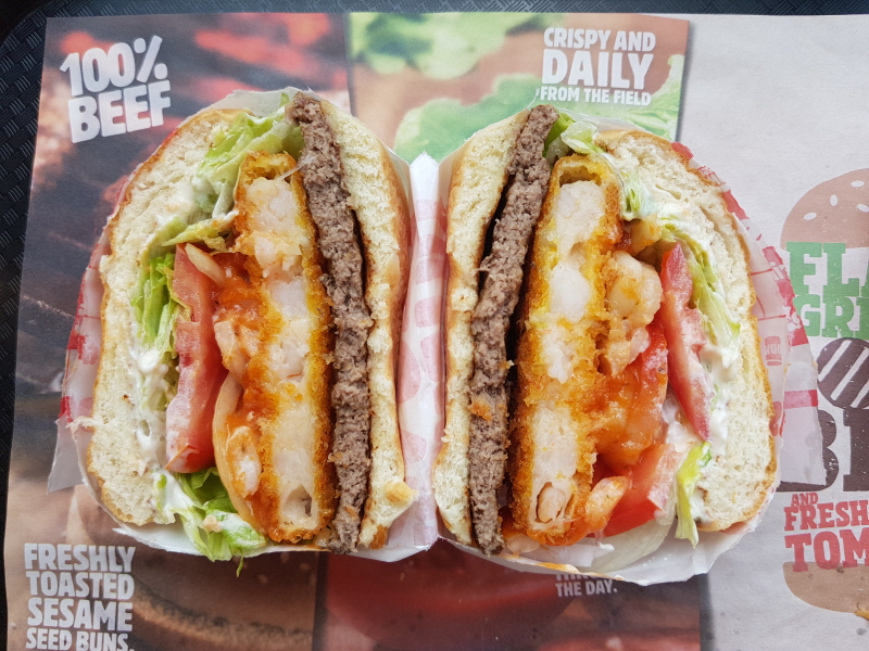 한 입을 베어물 때 새우가 들어간 부분은 새우의 맛과 식감이 나지만, 그렇지 않은 부분은 새우향 첨가 와퍼와 크게 다를 바가 없었어요.