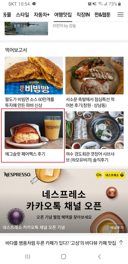 이번에 다음 메인에 올라온 포스팅은 에그슬럿의 대표 메뉴인 페어팩스 에요.