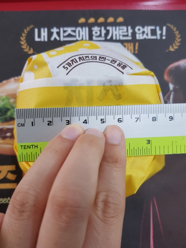 포장지는 치즈 no.5 와 동일하지만, 더블패티가 되어서 두께감이 있어요.