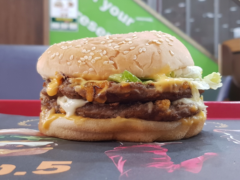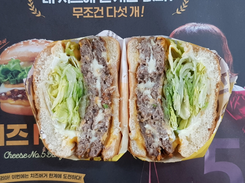 이번에 나온 메뉴는 더블 치즈 No.5 로, 지난 4월에 출시했던 치즈 No.5 의 더블패티 버전이에요.