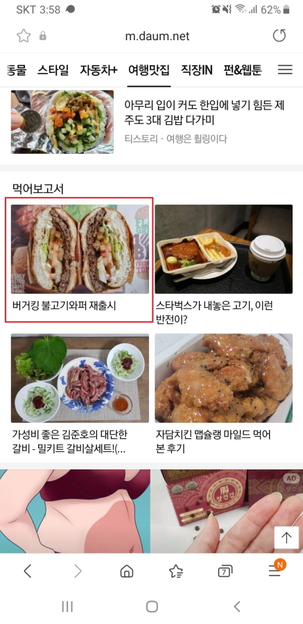 이번 메인에 올라간 글은 8월 2일, 버거킹에서 재출시된 불고기 와퍼에 관한 포스팅이에요.