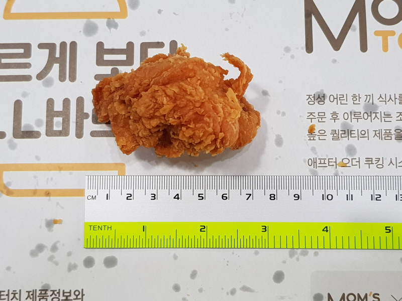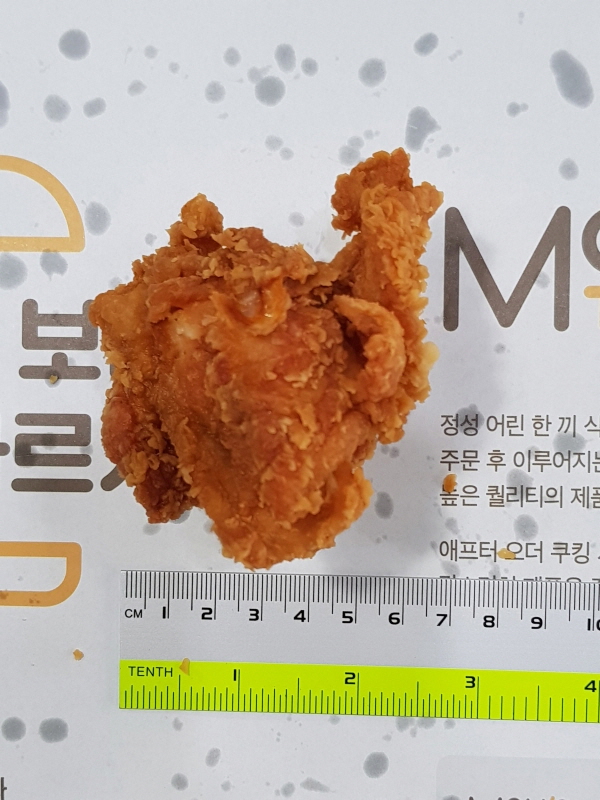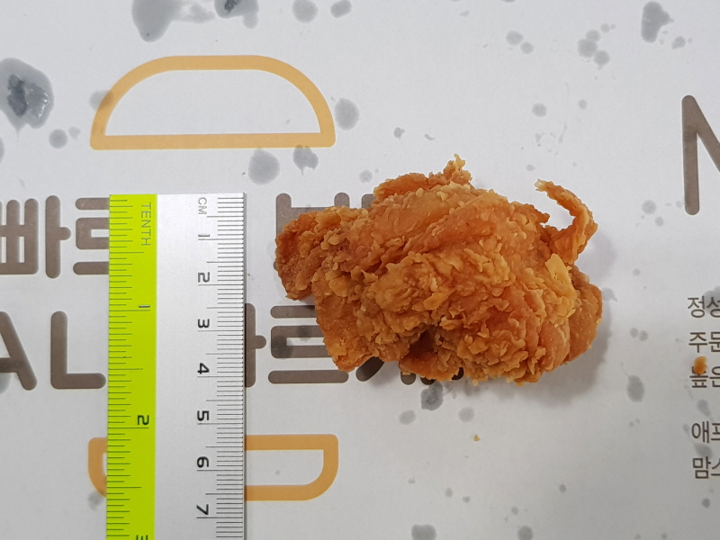 가장 작아보이는 사이즈의 치킨을 꺼내서 크기를 재보았습니다.