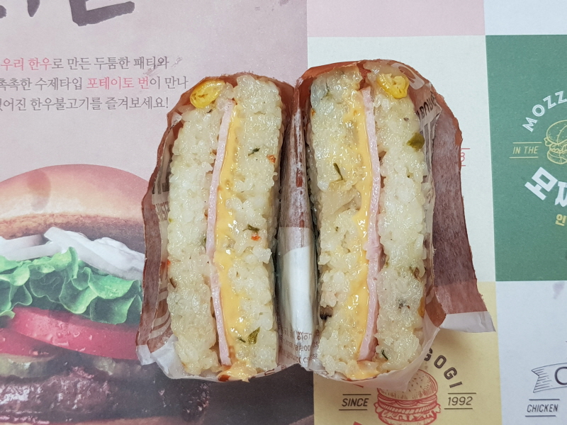 저기에 라이스 번 대신 잉글리쉬 머핀을 사용하면 맥도날드 맥모닝이 되는 거고, 식빵을 쓰면 홍루이젠 샌드위치가 되는 거니까요.