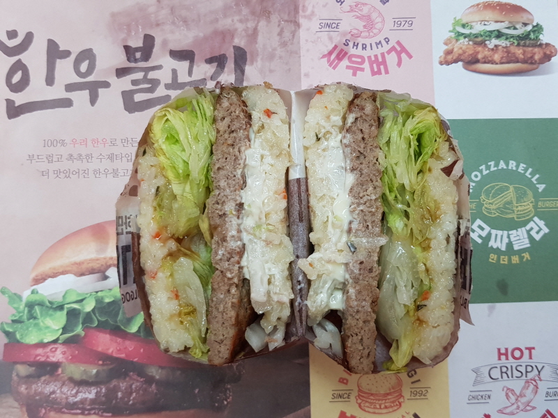 일반 불고기버거와 비교하면 번만 참깨번에서 라이브번, 즉 빵이 밥으로 바뀐 셈이에요.