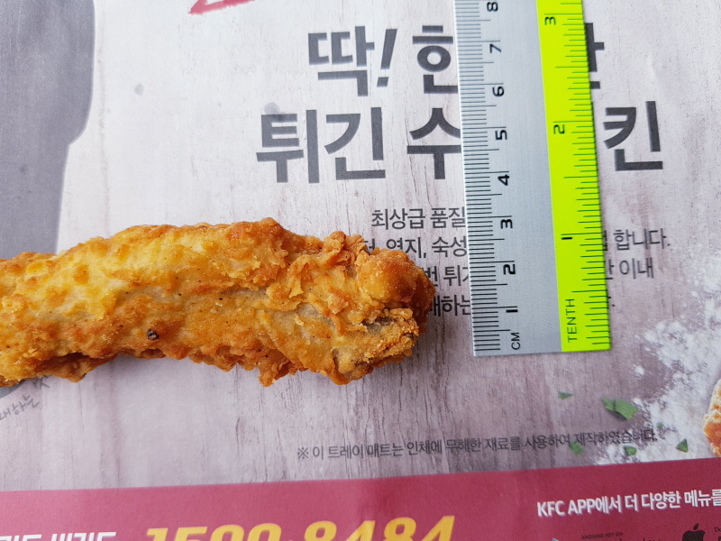 KFC의 일반 치킨이 1조각 기준 100g 인데, 이건 1/5 수준이에요.