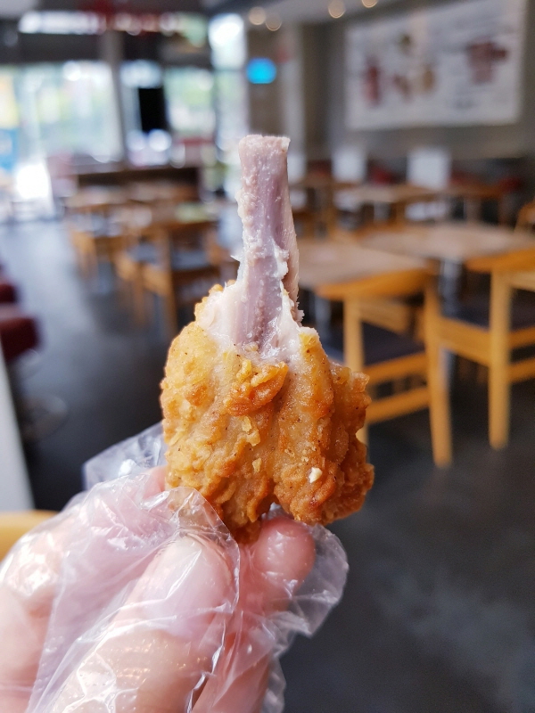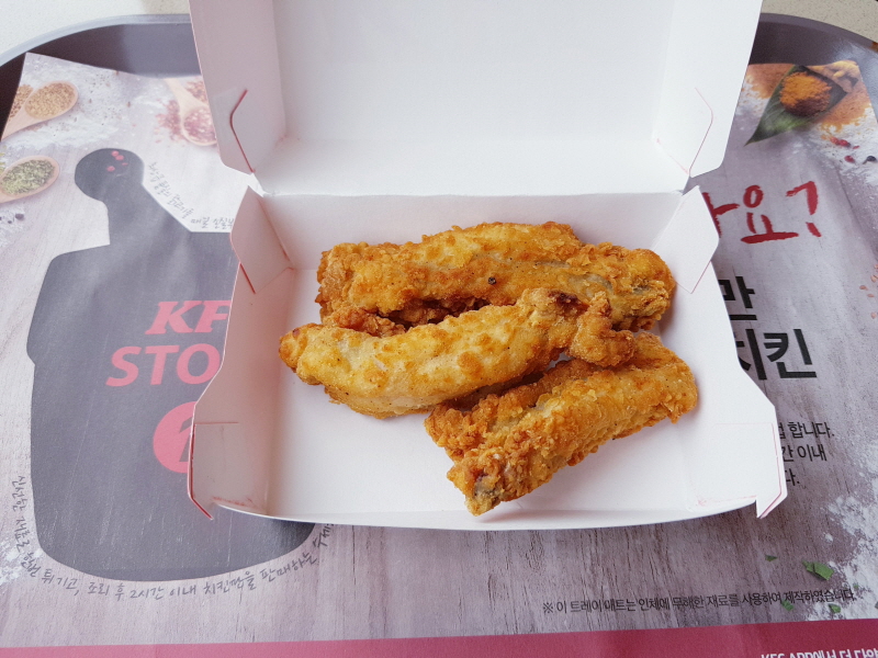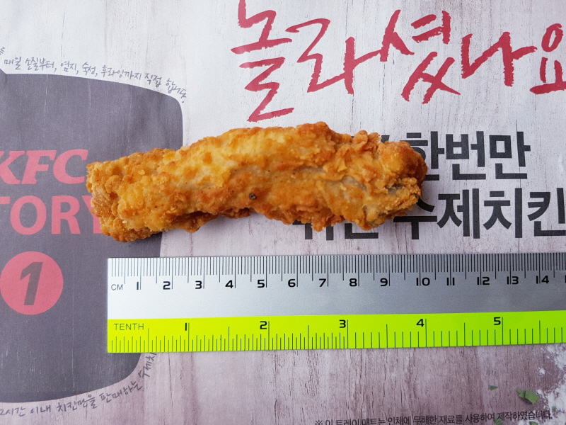 튀김옷은 오리지널 치킨 맛이었고, 안에는 길쭉한 뼈가 들어있어요.