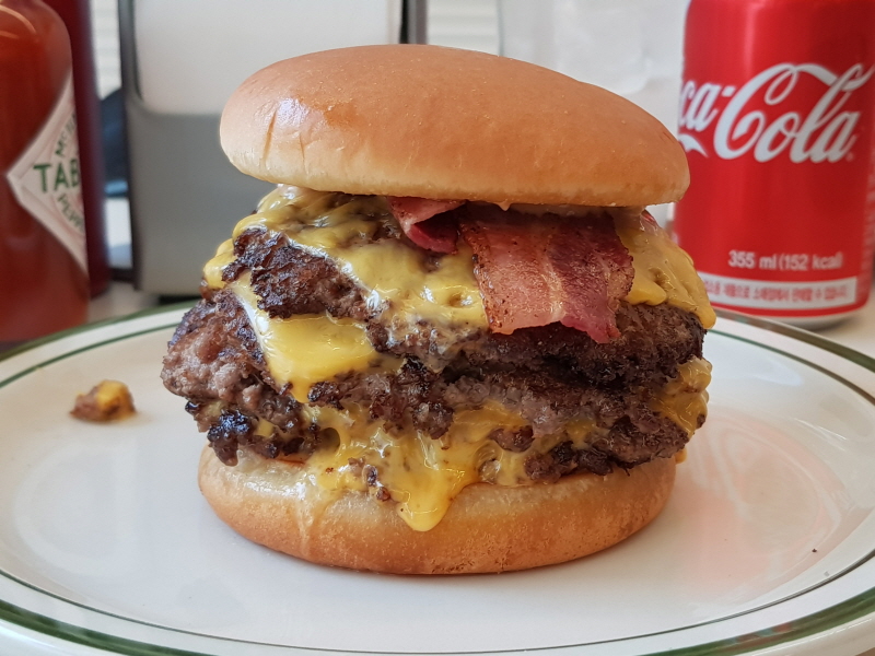 패티 4장에 치즈 4장, 땅콩잼에 베이컨까지...