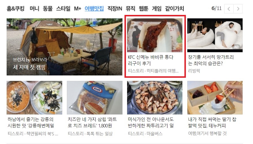이번 메인에 올라온 글은 KFC에서 출시된 신메뉴 치킨인 바비큐 통다리구이예요.