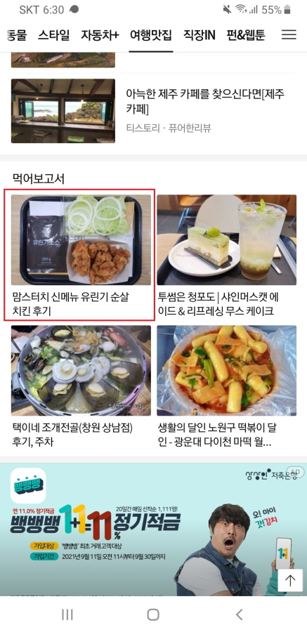 9월 18일 제 블로그의 글이 다음 메인에 올라왔어요.